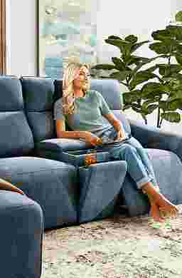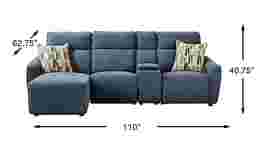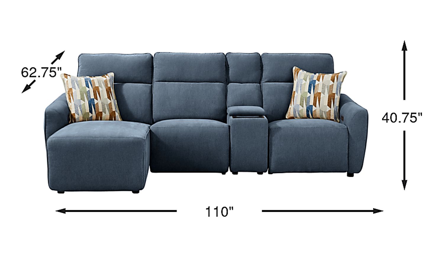 When the home feels most alive in its most relaxed moments, a refined comfort settles in with the Tremont collection, inviting all to lounge in style without sacrificing function. Contemporary in design, this sectional is upholstered in indigo blue woven chenille and finished with welted seams for a clean, tailored look. Soft radius arms and supportive back cushioning invite you to sink in, while power reclining lets you adjust the footrest with ease using activator switches that include both USB-A and USB-C charging ports. The included console brings extra convenience with a tray surface, hidden cupholders, and storage. To complete the ensemble, coordinating jacquard accent pillows add texture, depth and color. Upholstery: 100% polyester.