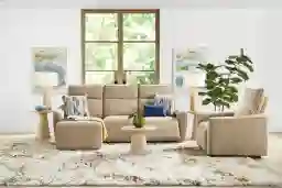 When the home feels most alive in its most relaxed moments, a refined comfort settles in with the Tremont collection, inviting all to lounge in style without sacrificing function. Contemporary in design, this sectional is upholstered in sandy beige woven chenille and finished with welted seams for a clean, tailored look. Soft radius arms and supportive back cushioning invite you to sink in, while power reclining lets you adjust the footrest with ease using activator switches that include both USB-A and USB-C charging ports. To complete the ensemble, coordinating jacquard accent pillows add texture, depth and color. Upholstery: 100% polyester.
