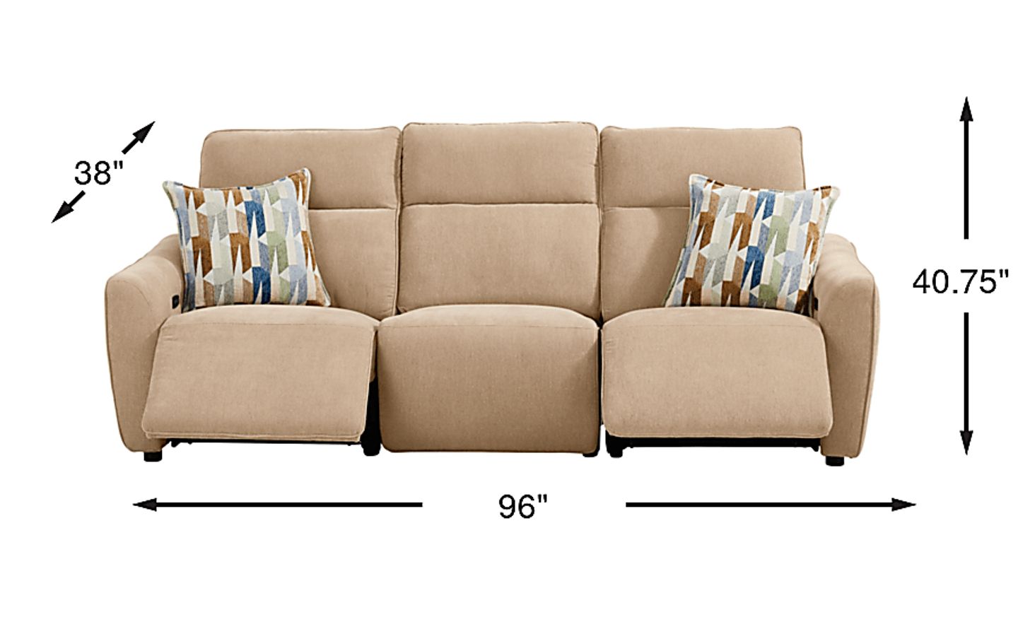 This sofa has a width of 96 inches and a depth of 38 inches. While it provides ample seating, its 3-piece modular construction makes it significantly easier to maneuver through standard 30-to-32-inch doorways and narrow apartment hallways compared to a single-frame sofa of the same size. We recommend measuring your space to ensure at least a few inches of clearance from the wall to allow the power reclining mechanism to extend fully.