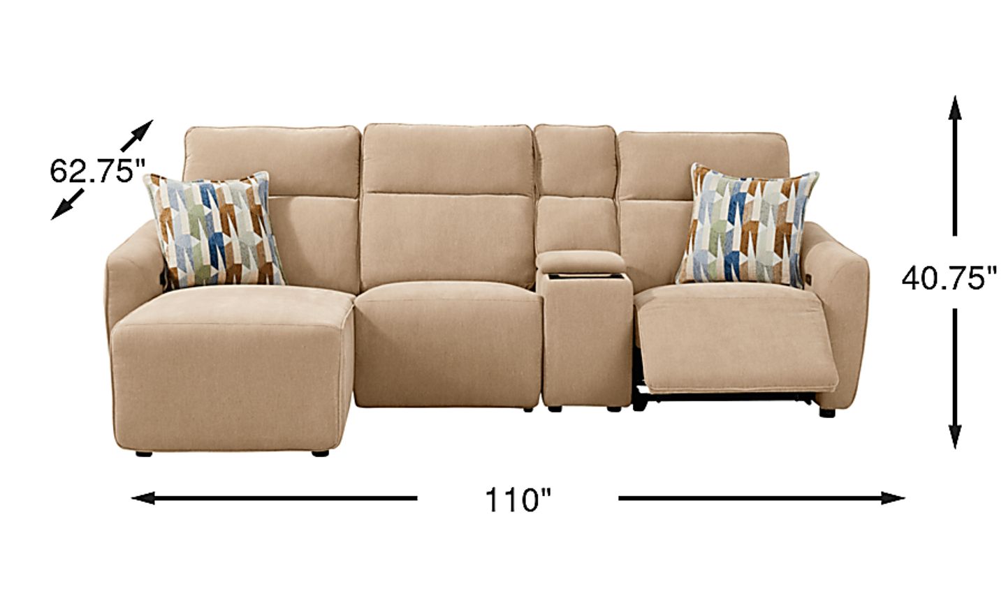 When the home feels most alive in its most relaxed moments, a refined comfort settles in with the Tremont collection, inviting all to lounge in style without sacrificing function. Contemporary in design, this sectional is upholstered in sandy beige woven chenille and finished with welted seams for a clean, tailored look. Soft radius arms and supportive back cushioning invite you to sink in, while power reclining lets you adjust the footrest with ease using activator switches that include both USB-A and USB-C charging ports. The included console brings extra convenience with a tray surface, hidden cupholders, and storage. To complete the ensemble, coordinating jacquard accent pillows add texture, depth and color. Upholstery: 100% polyester.
