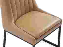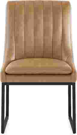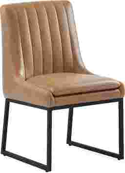 Quiet sophistication rises to the occasion through the Trenton collection's elevated yet timeless design. Upholstered in silky smooth camel brown fabric, this contemporary side chair features a gently contoured back with vertical channeling that adds depth and tailored appeal. Contrasting topstitching outlines the silhouette for a touch of classic detail, while the cushioned seat offers supportive comfort for lingering meals and conversations. Sleek u-shaped metal legs in black provide a clean, architectural foundation, making this piece a versatile choice for modern dining spaces with a hint of transitional elegance.