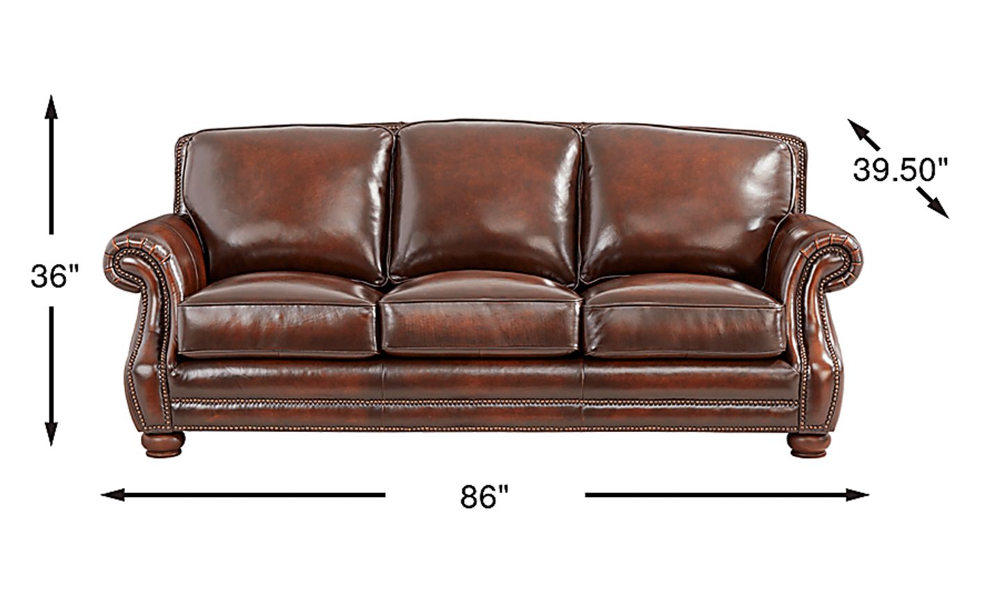 Timeless tradition and rich warmth welcome every sit with the Trevaro collection from Cindy Crawford Home as it brings refined ease and classic craftsmanship to the heart of the home. Upholstered in brown top grain leather where the body touches, this traditional sofa features plush seat and back cushions for sink-in comfort. Rolled arms and a classic nailhead trim boast tailored character, while subtle stitching and paneled shaping add depth. Tucked away is a Nature's Bed gel foam sleeper mattress that easily transforms your living room into a cool and comfortable sleep space for overnight guests. Turned bun feet ground the piece with an heirloom-inspired finish, and coordinating accent pillows introduce a soft touch with intricate patterns. Upholstery: Top grain leather where the body touches with polyurethane sides and back.