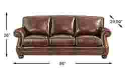 Timeless tradition and rich warmth welcome every sit with the Trevaro collection from Cindy Crawford Home as it brings refined ease and classic craftsmanship to the heart of the home. Upholstered in brown top grain leather where the body touches, this traditional sofa features plush seat and back cushions for sink-in comfort. Rolled arms and a classic nailhead trim boast tailored character, while subtle stitching and paneled shaping add depth. Tucked away is a Sealy Royale sleeper mattress that easily transforms your living room into a peaceful guest room. Turned bun feet ground the piece with an heirloom-inspired finish, and coordinating accent pillows introduce a soft touch with intricate patterns. Upholstery: Top grain leather where the body touches with polyurethane sides and back.
