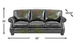 To maintain the beauty of the top-grain leather, our experts recommend regular dusting with a soft, dry cloth. For spills, blot immediately with a clean, damp cloth and avoid using harsh chemicals or detergents, which can strip the leather's natural oils. To prevent fading or cracking over time, it is best to place the sofa away from direct heat sources and prolonged exposure to intense sunlight.