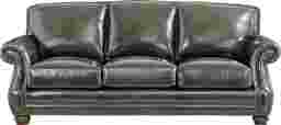 Timeless tradition and rich warmth welcome every sit with the Trevaro collection from Cindy Crawford Home as it brings refined ease and classic craftsmanship to the heart of the home. Upholstered in dark gray top grain leather where the body touches, this traditional sofa features plush seat and back cushions for sink-in comfort. Rolled arms and a classic nailhead trim boast tailored character, while subtle stitching and paneled shaping add depth. Tucked away is a Sealy Royale sleeper mattress that easily transforms your living room into a peaceful guest room. Turned bun feet ground the piece with an heirloom-inspired finish, and coordinating accent pillows introduce a soft touch with intricate patterns. Upholstery: Top grain leather where the body touches with polyurethane sides and back.