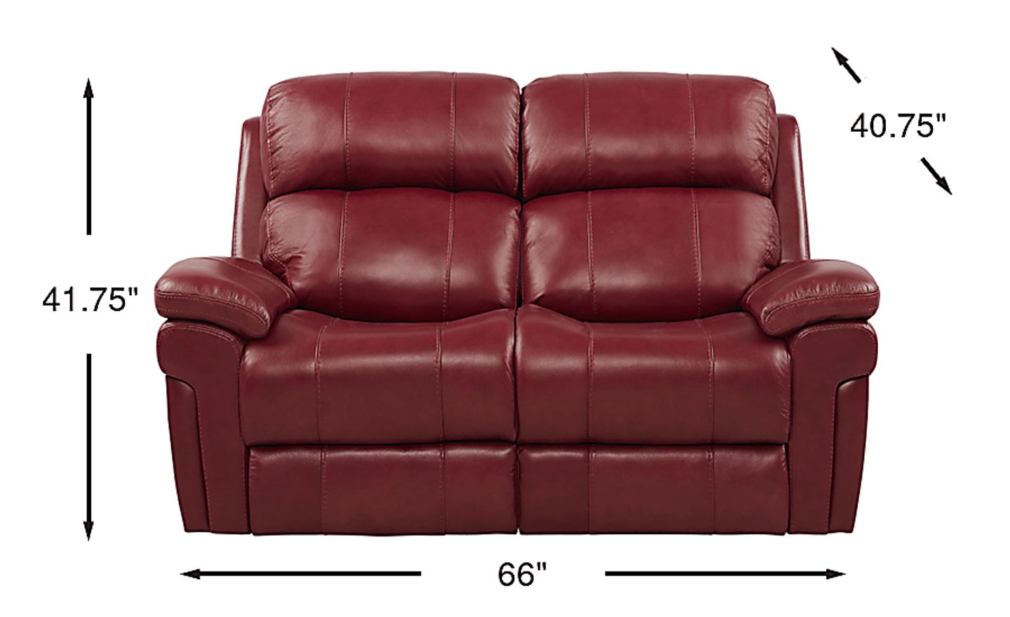 Seating for two is luxuriously comfortable with the Trevino Place loveseat. Made for relaxing movie nights and watching the big game, the loveseat is upholstered in burgundy colored supple top grain leather where the body touches. Contoured bucket seats and pillow top arms add cozy elements while contrasting baseball style stitching detail adds just the right finishing touch. Top grain leather where the body touches and vinyl sides and backs.