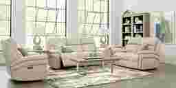 Trevino Place Cream Leather 5 Pc Living Room with Reclining Sofa