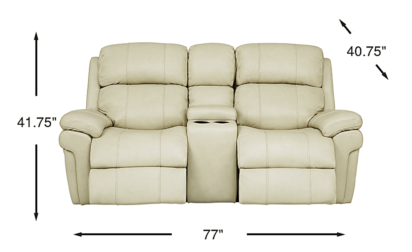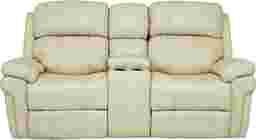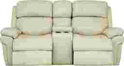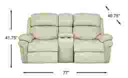 Seating for two is luxuriously comfortable and convenient with the Trevino Place dual power reclining loveseat. Upholstered in top grain leather where the body touches, the loveseat has twin cupholders, a lift-top storage console and USB ports on each side. Additional premium features include power headrests and padded power footrests that raise and lower for customized comfort at the touch of a button. An innovative memory switch gives instant access to repeat favorite positions. The power headrest feature provides three extra inches of back height that tilts forward for the most comfortable position for watching television. Contoured bucket seats and pillow top arms add cozy elements while contrasting baseball style stitching detail adds just the right complement to the leather's appealing cream color. Top grain leather where the body touches and vinyl sides and backs.