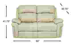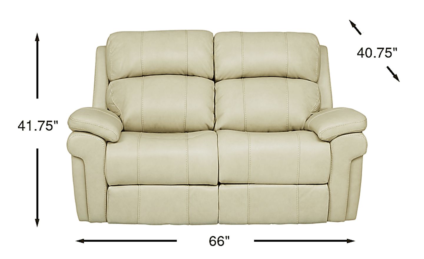 Seating for two is luxuriously comfortable with the Trevino Place loveseat. Made for relaxing movie nights and watching the big game, the loveseat is upholstered in cream colored supple top grain leather where the body touches. Contoured bucket seats and pillow top arms add cozy elements while contrasting baseball style stitching detail adds just the right finishing touch. Top grain leather where the body touches and vinyl sides and backs.