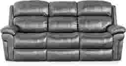 The Trevino dual power reclining sofa is designed for lavish comfort and up-to-date amenities. From the supple top grain leather where the body touches to the envelop style back to the contoured seats, pillowtop arms and power headrests and footrests on each end, this sofa is made for relaxing full-body support. Deluxe features include a memory switch for easily returning to favorite positions with the touch of a button. The power headrest element provides three extra inches of back height that tilts forward to create the most comfortable position for watching television. A USB port located on each side of the sofa allows for easy charging of any mobile device. Contrasting baseball style stitching detail adds just the right complement to the leather's smoke gray color. Top grain leather where the body touches and vinyl sides and backs.