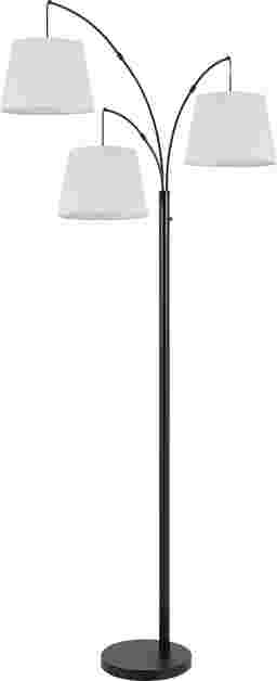 Add the Tribane Bay floor lamp to your living room or bedroom for a clean, crisp look. Featuring three tapered shades hanging from a black metal base, this lamp will bring a touch of style to your home for years to come. Partial assembly may be required.