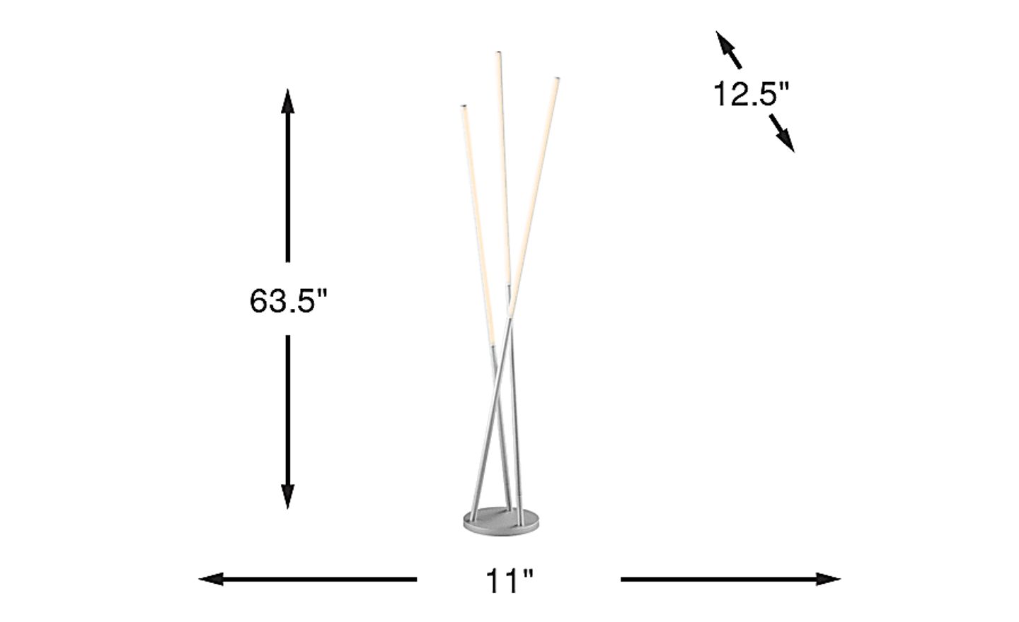 Despite its minimalist design, the Triko Avenue LED floor lamp will be the focal point of any space. It features a silver finish over metal construction, topped with acrylic diffusers, but the prominent feature is its sleek, wispy-thin silhouette. One touch switch located on pole provides 4-way dimming lighting control. It's an eye-catching design that looks great in a modern living space or a home entertainment room. Partial assembly may be required.