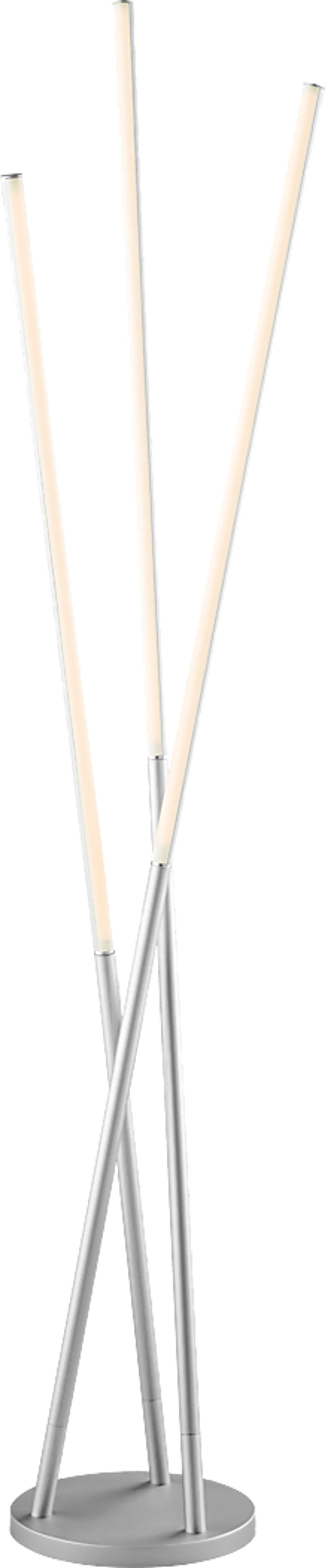 Despite its minimalist design, the Triko Avenue LED floor lamp will be the focal point of any space. It features a silver finish over metal construction, topped with acrylic diffusers, but the prominent feature is its sleek, wispy-thin silhouette. One touch switch located on pole provides 4-way dimming lighting control. It's an eye-catching design that looks great in a modern living space or a home entertainment room. Partial assembly may be required.