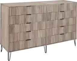 The Trimper II gray dresser brings tasteful modern glam to your home. With its unique vertical ribbed drawer front, full extension and soft close drawers, and stylish splayed metal legs, this dresser is not only a true beauty but also made with quality. Includes sleek metal horizontal handles. Assemble this item with no tools. Includes high quality internal click grooves for a simple assembly. Customer assembly is required.