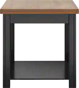 The Trisano 24in. side table delivers a flawless combination of modern farmhouse style and country simplicity. Beautifully crafted from poplar solids, okoume veneers and knotty alder, this end table features a two-tone black and whiskey finish and will accent your sofa or favorite chair beautifully. This versatile accent table is the ideal spot to showcase a table lamp and home dcor up top with a throw or blanket on the shelf below. Fully assembled upon arrival.