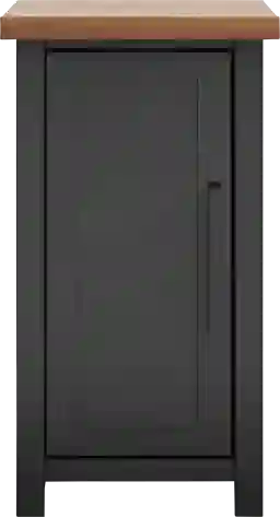 This functional accent table features a cabinet-style design with one door and an interior shelf. This configuration is ideal for those who prefer to keep their bedside essentials organized and out of sight, providing ample room for books, electronics, or personal items while keeping the top surface clear for a lamp or clock.