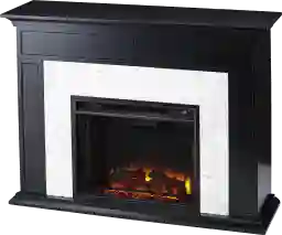 Modernize your media room with this Tronewood II black and white marble fireplace. Herringbone patterned tile and authentic marble join together to craft a look that's both homey and elegant. Glowing faux fire logs add ambiance with flickering LED flames and lifelike embers, with or without heat. Add grace and charm to your family living area when you add this authentic marble fireplace to the heart of your home. Customer assembly is required.