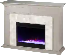 Modernize your media room with this Tronewood I gray and white marble fireplace. Hexagon shaped tile and authentic marble join together to craft a look that's both homey and elegant. Shimmering acrylic fill adds ambiance with flickering LED flames, alternating colors, and lifelike embers, all from the convenience of your sofa. Add grace and charm to your family living area when you add this real marble fireplace to the heart of your home. Customer assembly is required.