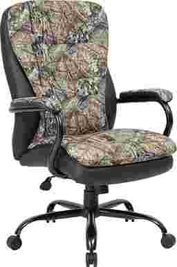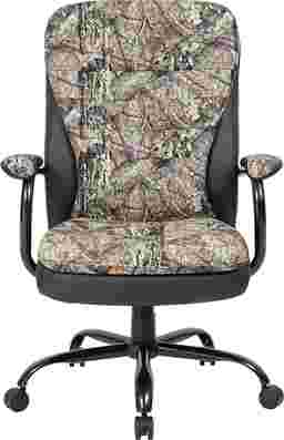 The Trongate executive chair has a heavy duty pillow top and its 400 pound weight capacity renders it compatible with a range of different body types. It is upholstered in camouflage fabric and its sport padded arms are incorporated into steel wrap around style construction for maximum comfort. The Trongate features improved pneumatic gas lift seat height adjustment, and a heavy duty spring tilt mechanism. Customer assembly is required.