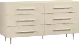 With six spacious drawers and a substantial 62-inch width, this dresser provides ample organizational space for a full wardrobe. The design balances a wide profile with a streamlined 32.5-inch height, making the top surface an ideal height for use as a media stand or for displaying decorative accents.