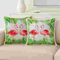 This eye-catching set of 2 Trotawa accent pillows will surely add a refreshing tropical vibe to your home. With its flamingo-patterned design and vibrant color hues, it gives off a rich, natural element that you and your guests will love. What's more, this pillow is handcrafted using 100% polyester, making it extra soft to touch but durable enough to withstand daily use. Get this piece today to bring style and comfort to your space! Poly insert included.