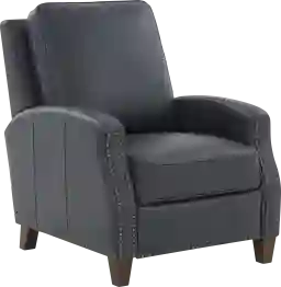 Experience the perfect blend of timeless design and contemporary comfort with our Tulaga push back recliner. Upholstered in superior faux leather gel technology, delivering the look and feel of top-grain leather. The tailored track style arms with antique brass nail head accents add a classic touch that complements both traditional and modern interiors. Accented with rich brown solid wood tapered legs, this recliner strikes the perfect balance between style and stability. Customer assembly is required.