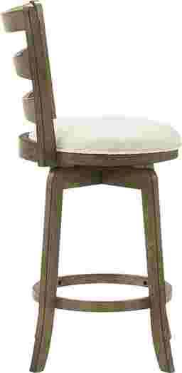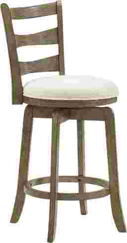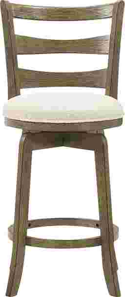 The Tuliprover counter stool blends traditional charm with modern versatility, creating an inviting piece that suits both casual and formal spaces. Featuring a graceful ladder-back design, this stool delivers a warm, timeless aesthetic enhanced by soft curves and a balanced silhouette. Its solid natural wood frame, provides natural character and stability that stand the test of time. Paired with the plush white boucle performance fabric, Tuliprover brings both comfort and texture to your kitchen island, bar, or dining counter. Designed for functional elegance, equipped with a 360-degree swivel seat that allows effortless movement and interaction from any angle. The smooth swivel mechanism makes it ideal for entertaining, dining, or everyday conversation, offering flexibility without compromising balance. The padded round seat and supportive ladder-style backrest deliver a comfortable seating experience, while the built-in circular footrest ensures ergonomic support for extended sitting