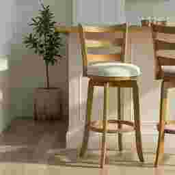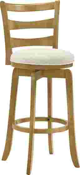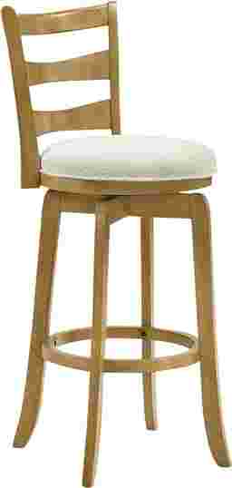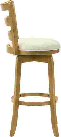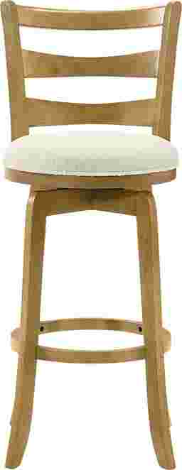 The Tuliprover barstool blends traditional charm with modern versatility, creating an inviting piece that suits both casual and formal spaces. Featuring a graceful ladder-back design, this stool delivers a warm, timeless aesthetic enhanced by soft curves and a balanced silhouette. Its solid natural wood frame, provides natural character and stability that stand the test of time. Paired with the plush white boucle performance fabric, Tuliprover brings both comfort and texture to your kitchen island, bar, or dining counter. Designed for functional elegance, equipped with a 360-degree swivel seat that allows effortless movement and interaction from any angle. The smooth swivel mechanism makes it ideal for entertaining, dining, or everyday conversation, offering flexibility without compromising balance. The padded round seat and supportive ladder-style backrest deliver a comfortable seating experience, while the built-in circular footrest ensures ergonomic support for extended sitting. Eve