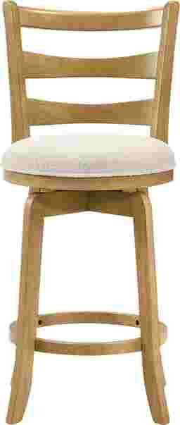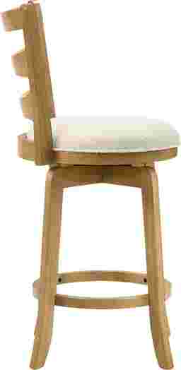 The Tuliprover counter stool blends traditional charm with modern versatility, creating an inviting piece that suits both casual and formal spaces. Featuring a graceful ladder-back design, this stool delivers a warm, timeless aesthetic enhanced by soft curves and a balanced silhouette. Its solid natural wood frame, provides natural character and stability that stand the test of time. Paired with the plush white boucle performance fabric, Tuliprover brings both comfort and texture to your kitchen island, bar, or dining counter. Designed for functional elegance, equipped with a 360-degree swivel seat that allows effortless movement and interaction from any angle. The smooth swivel mechanism makes it ideal for entertaining, dining, or everyday conversation, offering flexibility without compromising balance. The padded round seat and supportive ladder-style backrest deliver a comfortable seating experience, while the built-in circular footrest ensures ergonomic support for extended sitting
