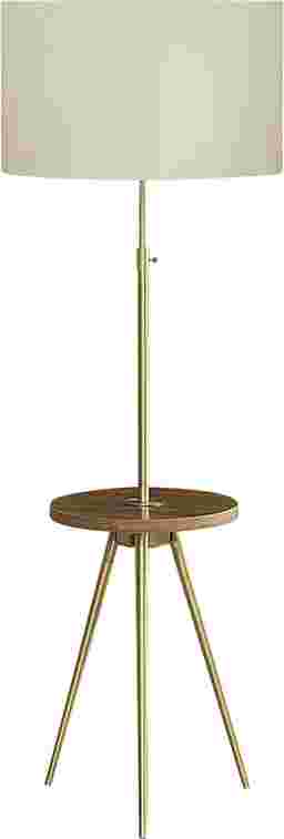 Bring some effortless ambiance to your living space with Tulipsun Gold Floor Lamp. This contemporary lamp features a sophisticated tripod design with an adjustable neck to lower or raise the lamp to your needs, effortlessly brightening your living room, bedroom, or office space. The built-in round shelf table is handy to place a drink or phone while seated. This decorative and modern lighting accent is sure to make a statement in any room! Partial assembly may be required.