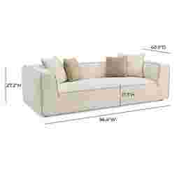 Bold and stylish, the Tuliptime cream sofa is a sleek yet formidable addition to your living room. Deep and highly cushioned, this European silhouette is modified for comfort and comes with heavy accent pillows of ethical synthetic down fibers. Lined with contrasted piping and four accent pillows, the mixture of materials here is one of the hottest trends. Amazing in the middle of the room or against a corner, this 360-degree beauty is a showstopper from any angle. Every face is rounded and padded and covered in high density foam. Customer assembly is required.