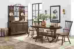 Rooted in the warmth of tradition, the Tullius collection brings heritage and hospitality to life through timeless craftsmanship and charming details. Finished in a rich dark brown hue, this traditional side chair features an elegant spindle back and beautifully turned legs that add sophisticated charm to the piece.