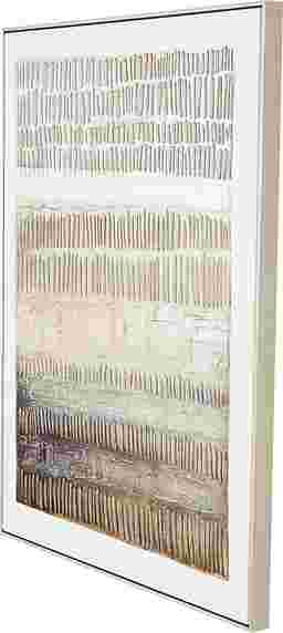 Transform your space with the timeless elegance of the Tulme framed wall art, where old-world textures and warm hues create a refined sense of luxury. Crafted from premium canvas, iron, polystone, and pine, this piece blends durability with sophisticated artistry. The textured finish, layered with earthy browns and brushed cream strokes, brings depth and visual intrigue to your walls. Encased in a sleek brass frame, the elegant oval patterns evoke a serene, coastal-inspired atmosphere that feels both calming and stylish. Measuring nearly 40 inches tall, the Tulme wall art makes a striking focal point in any living room or entryway. Customer assembly is required.