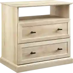 The Turlough nightstand features a multi-functional storage design with two drawers and one open cubby. The two drawers are equipped with metal telescoping glides for smooth, reliable access to personal items you prefer to keep out of sight. The open cubby provides a dedicated space for larger items like books, tablets, or even a CPAP machine, keeping your tabletop clear of clutter.