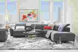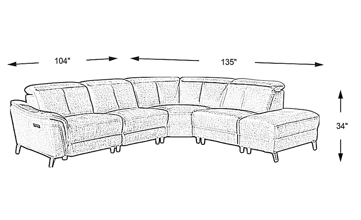 Modern sophistication meets luxurious comfort in the Turano sectional. Upholstered in soft textured fabric in a trendy denim color, it transforms your living area into the perfect place for entertaining or relaxing. Two chaise recliners with unique dual power adjustable headrests can be raised or lowered to any desired position at the push of a button, ensuring you're comfortable and supported from head to toe. A console with lift-top storage and two cupholders add a convenient touch, while a built-in charging USB port on one end keeps your electronics charged. When you want to stretch out, a convenient bumper ottoman provides plenty of extra room to kick your feet up. Upholstery: 100% Polyester