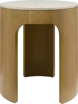 Introducing the Tuslen End Table, a timeless addition that seamlessly blends sophistication and functionality into your living space. This exquisite piece features a luxurious marble top poised elegantly atop a sturdy base of oak veneer and plywood. Its beautiful style makes it a versatile choice for any room, offering both aesthetic appeal and practicality. Manufactured with precision, this end table promises durability while its care is effortlessly simple. It only requires a wipe with a dry cloth to maintain its allure. Perfect for those who appreciate fine details without the hassle of intensive maintenance.