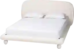 Enjoy soothing nights in the lavish embrace of the Tithelo ivory queen bed. This modern luxe inspired piece consists of a sturdy wood frame padded with plush foam and upholstered in sumptuous boucle fabric. Its bold headboard is beautifully bordered with subtle tufting while the flared railing distinguishes the piece as a haven of serene respite. The Tithelo utilizes wood slats for mattress support, eliminating the need for a box spring. Round, tapered legs complete the look, making the Tuteur a tranquil bedroom centerpiece. Customer assembly is required.