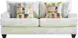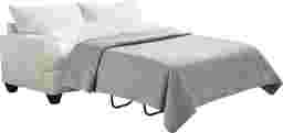 The crisp, graceful spirit of tranquil lakeshore living comes home in the Twin Falls collection, where casual lounging and effortless entertaining becomes second nature. Upholstered in a soft woven fabric with a serene ivory hue, this contemporary sleeper loveseat features welted seams that trace its sleek track arms and clean-lined silhouette. The pillow-style back and deep cushion provide plush comfort while maintaining a tailored, modern look. Tucked away is a full Nature's Bed gel foam sleeper mattress that easily transforms into a cool and comfortable sleep space for overnight guests. Complementing geometric accent pillows add a playful touch of color and depth, while tapered black legs ground the design with quiet sophistication. Upholstery: 100% Polyester.