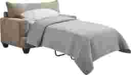 The crisp, graceful spirit of tranquil lakeshore living comes home in the Twin Falls collection, where casual lounging and effortless entertaining becomes second nature. Upholstered in a soft woven fabric with a mink brown hue, this contemporary sleeper chair features welted seams that trace its sleek track arms and clean-lined silhouette. The pillow-style back and deep cushion provide plush comfort while maintaining a tailored, modern look. Tucked away is a twin Nature's Bed gel foam sleeper mattress that easily transforms into a cool and comfortable sleep space for overnight guests. Complementing geometric accent pillows add a playful touch of color and depth, while tapered black legs ground the design with quiet sophistication. Upholstery: 100% Polyester.