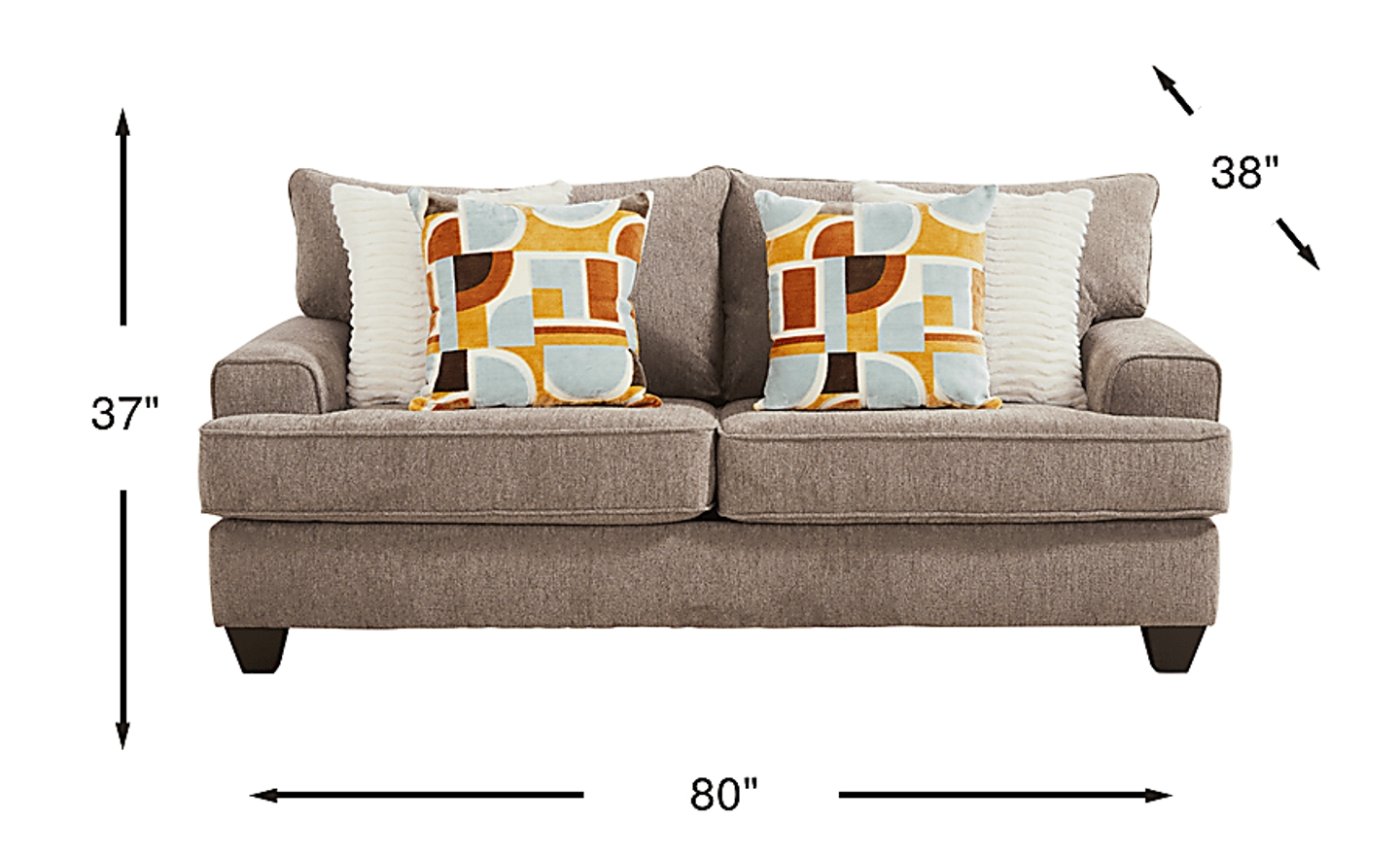 The crisp, graceful spirit of tranquil lakeshore living comes home in the Twin Falls collection, where casual lounging and effortless entertaining becomes second nature. Upholstered in a soft woven fabric with a mink brown hue, this contemporary loveseat features welted seams that trace its sleek track arms and clean-lined silhouette. Pillow-style backs and deep cushions provide plush comfort while maintaining a tailored, modern look. Complementing geometric accent pillows add a playful touch of color and depth, while tapered black legs ground the design with quiet sophistication. Upholstery: 100% Polyester.