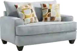 The crisp, graceful spirit of tranquil lakeshore living comes home in the Twin Falls collection, where casual lounging and effortless entertaining becomes second nature. Upholstered in a soft woven fabric with a serene blue hue, this contemporary sleeper chair features welted seams that trace its sleek track arms and clean-lined silhouette. The pillow-style back and deep cushion provide plush comfort while maintaining a tailored, modern look. Tucked away is a twin Sealy Royale sleeper mattress that easily transforms into a peaceful sleep space for overnight guests. Complementing geometric accent pillows add a playful touch of color and depth, while tapered black legs ground the design with quiet sophistication. Upholstery: 100% Polyester.