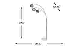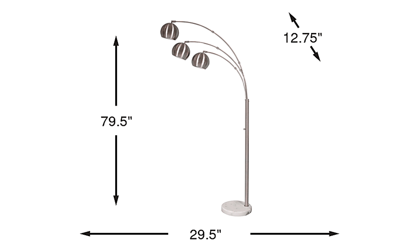 With three slim arched arms each having a large dome-shaped metal shade, the Astoria Arc Lamp is a great way to achieve overhead lighting with style. A 100 Watt bulb can illuminate a large sitting area while an brushed steel finish and substantial sophisticated white marble base complement the decor of any room. A rotary dimmer switch is located on the pole adjusting from bright light to mood lighting. This lamp has a clear cord and is smart outlet compatible. Bulb is not included. Assembly is required.