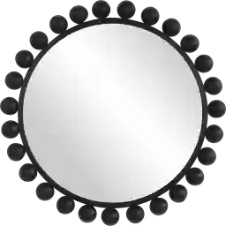 Make a statement with this Tyse 34 inch round metal mirror, surrounded by 2.5 hemispheres. The simple and sleek inner frame allows the focus to be on the dome shaped ornaments. Finished in a matte black, this mirror will be a focal point in any room. Customer assembly is required.