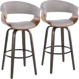 Whether it is in a set or on its own, the Uandi I Stone Swivel Counter Height Stool, Set of 2 is sure to make a statement. With sophisticated rounded bentwood legs and fabric cushioned seat with an open back designed for maximum comfort, this barstool is the perfect fit for any setting. Add it to your kitchen or bar for an impressive appeal. Customer assembly required.