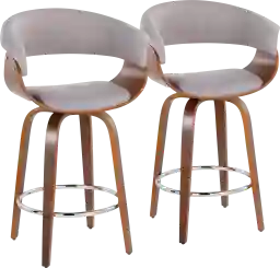 Whether it is in a set or on its own, the Uandi II Stone Swivel Counter Height Stool, Set of 2 is sure to make a statement. With sophisticated rounded bent wood legs and fabric cushioned seat with an open back designed for maximum comfort, this counter stool is the perfect fit for any setting. Add it to your kitchen or bar for an impressive appeal. Customer assembly required.