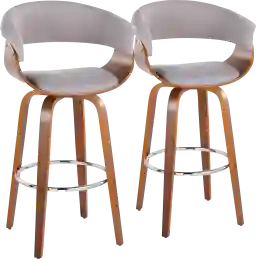 Whether it is in a set or on its own, the Uandi II Stone Swivel Counter Height Stool, Set of 2 is sure to make a statement. With sophisticated rounded bentwood legs and fabric cushioned seat with an open back designed for maximum comfort, this barstool is the perfect fit for any setting. Add it to your kitchen or bar for an impressive appeal. Customer assembly required.
