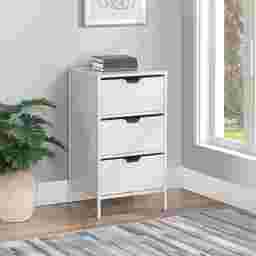Uchea is simply the best solution for attractive storage of small accessories, office supplies and personal gadgets that need tidy organization. Intuitive cut-out drawer pulls offer a flush profile, while our slim but stout 3-drawer design results in a nod to small-space living. Our contemporary utility style will look right at home in your home office, mudroom, family room or bedroom, providing that much needed, extra storage while maintaining an attractive stance. Drawers are deep enough for larger items like gloves, scarves, and gym accessories, but handy enough for small items such as keys, remotes, and spare batteries. The laminate woodgrain finish and sturdy, steel frame will add long-lasting durability and beauty for years to come. Customer assembly is required.
