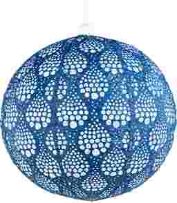 Bring a touch of elegance to your home or garden with the Uchenna Blue Outdoor Solar Lantern. Featuring a zen-inspired punched pattern that mimics cascading dewdrops, this decorative globe shaped pendant lamp casts enchanting, intricate light patterns-perfect for creating a serene and inviting atmosphere indoors or outdoors. Partial assembly may be required.