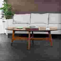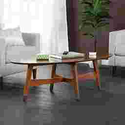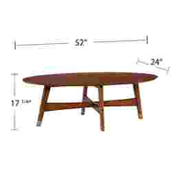 Midcentury dreams come true with the Uggan retro coffee table. A spacious tabletop displays your favorite books or floral arrangements, while a simple silhouette and brass accented feet punctuate the vintage flare. Rich sienna color gives depth and versatility to your living room or becomes the envy of your open concept space. Stir up great conversations with this oval coffee table. Customer assembly required.