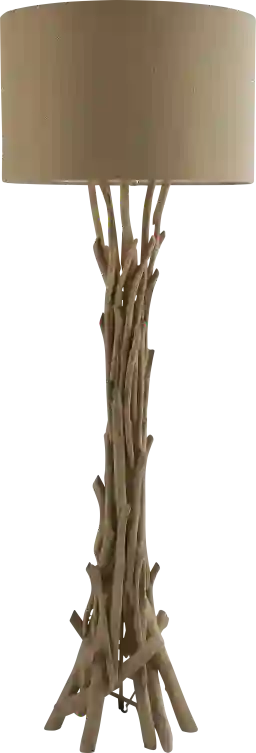 The base is crafted using authentic driftwood pieces supported by an internal iron frame for maximum structural integrity. Driftwood is highly prized in interior design for its unique, weathered texture and organic shapes, ensuring that your lamp serves as a "novelty" focal point. The oiled light brown finish not only highlights the natural beauty of the wood but also provides a protective barrier to maintain its rustic charm over time.